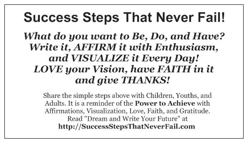 "Dream and Write Your Future" is the theme of the "Free Online Success Workshop" that can be a part of any workshop or used alone. It consists of three very simple parts; its very effective and can be done in about one or two hours.
